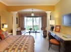 My junior suite and balcony gazed over the oversized pool with palapa (thatched-roof) bar, children’s water park, and immense beachfront. Inside, the gold and orange motif was attractively balanced by dark tropical wood cabinetry with neat touches like a rain dance-style shower, handmade Mexican porcelain tile floors, and 400-thread-count Egyptian cotton sheets. A nightly turndown service was complemented by a daily fruit basket with bottle of wine and free but limited mini-bar.