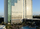 In the past decade Orlando has strived to vary its appeal from inexpensive, mass tourism to more luxury brands. In fact, I recently upgraded my Forida’s Turnpike 3.5 hour drive from Miami with RedCoach, a fleet of sleek 27-passenger Prevost motorcoaches with Wi-Fi, 110-v outlets, fully reclinable leather business class seats (140 degrees), and LCD monitors for films. From their bus terminal near Orlando International Airport (free shuttle) it was an easy car rental drive west to International Drive, Orlando’s main tourist drag. There I reached the Peabody Orlando, a 1641-room AAA Four Diamond resort which has just completed a $450 million expansion with twin towers and a 300,000 sq. ft. function space across from the mammoth 2.2 million sq. ft. Orange County Convention Center. Despite its girth, the Peabody Orlando feels intimate and navigable, aided by a highly courteous staff, from bellhops and reception to the very efficient concierge desk. On the 26th floor of the New Tower the panoramic Peabody Club lounge provides complimentary continental breakfast, light snacks, drinks and evening desserts. Beige and tan-accented Club level rooms surprise with the comfy Peabody Dream Bed, Panasonic 42-inch LCDs, bathroom in-mirror TVs, very handy LED night “stumble” lights, a “feed the fridge” menu for self-stocking, and Wi-Fi internet access. Downstairs, their 22,000 sq. ft. full service spa and fitness center offer Octane equipment, a private grotto area with whirlpool tubs, a signature mango ginger skin infusion, waxing, nail services, and even couples, teen and kids treatments.