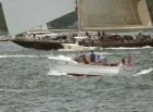 Have you ever dreamt about having access to a private yacht? Wouldn’t it be nice to experience the best of what New England has to offer during the summer, while sitting on the foredeck as you watch the boats go by? Wait no longer! Follow me on a marvelous weekend getaway in Newport, Rhode Island and watch the J Class Regatta aboard the 64 foot Burger M/Y AMBROSIA. We’ll live it up with a cocktail party on board, then dine and dance on shore. And it doesn’t end there. Trade in your blues and whites and put on your pinks and greens and head to the oldest Polo field in North America. Let’s go! Approaching the dock where Vintage Yachting Club’s AMBROSIA was based was quite an experience since, I got a front row view of MALTESE FALCON, the largest private sailboat in the world at 289’, who was also there to view this historic race. A wonderful day on the water with a front row view of the action. Along with many other boaters, we tailed the two competitors for a few hours. RANGER took it today but there were still 2 more days left. After returning to the dock, I headed to the land while captain Oliver and crew prepped the boat for the VIP cocktail party sponsored by VYC and Bartram & Brakenhoff.