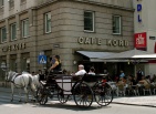 Grand Café - Vienna’s - Most Storied Meeting Place However, inside, with its vaulted ceilings, marble pillars, wooden hat racks , bentwood chairs, and foreign periodicals on roller sticks, the Café Grand (or Grand Café) was once the haunt of such dastardly political villains as Lenin, Trotsky, and Freud. It almost seemed like at any minute an anarchist, perhaps a Serbian terrorist from “The Black Hand,” who assassinated The Archduke Ferdinand in Sarajevo, thus sparking World War I, would come in and roll a bowling-ball shaped bomb down the elaborately laid parquet flooring. In point of fact, though, I couldn’t tell offhand if “Siggy” was just an apparent poseur dressed in a 19th-century-style frockcoat, more Fraud than Freud. I instead took him at his word, mostly wretched Englische. “Wellkommen, Bienvenu, Welcome!” Siggy sang like Joel Gray in “Cabaret.” Everything was oh-so perfect, an epiphany: even if this spectacle was one of the only non-smoking demesnes in all of Vienna. Why? Nothing goes better with a cigarette than a “machiatto”! Ah, at last the al fresco! Siggy and I left the Café Grand, much like a quick gay pickup (even though I am straight), in order to direct me on a walking tour of Vienna’s favorite sites, taking in as many Kaffeeklatches we could muster. In retrospect, I never drank more cups of coffee in my life.